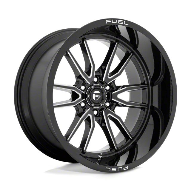 Fuel Wheels Clash Gloss Black Milled 6-Lug Wheel; 22x12; -44mm Offset The Fuel Wheels Clash Gloss Black Milled 6-Lug Wheel combines a sleek, sophisticated design with premium construction that enhances the visual appeal and complements a wide range of vehicle styles. This wheel is perfect for those seeking to make a bold statement while maintaining elegance and robustness.