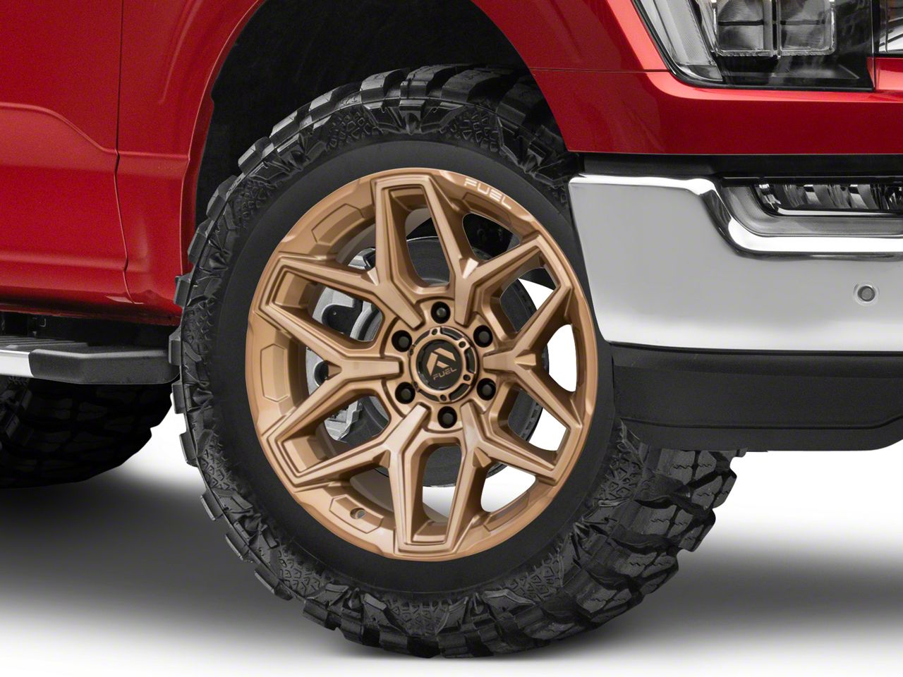 Application. This Fuel Wheels Flux Platinum Bronze 6-Lug Wheel; 20x9; 20mm Offset with a backspace of 5.787 Inch, 147mm; and bolt pattern of 6 x 135mm (6 x 5.31-Inch), contributes to alignment, driving stability, and ensures a perfect fit with the vehicle model. Designed to fit the 2021-2026 F-150. Sold individually.