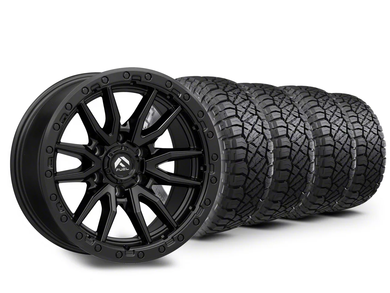 Mounted and Balanced Wheel and Tire Kit. This wheel and tire combo kit features (4) 18x9 Fuel Rebel Matte Black 6-Lug Wheels and (4) NITTO Ridge Grappler All-Terrain 275/70R18 tires that have been put together into an easy to buy kit that arrives to your door already mounted and balanced ready to be installed on your vehicle.