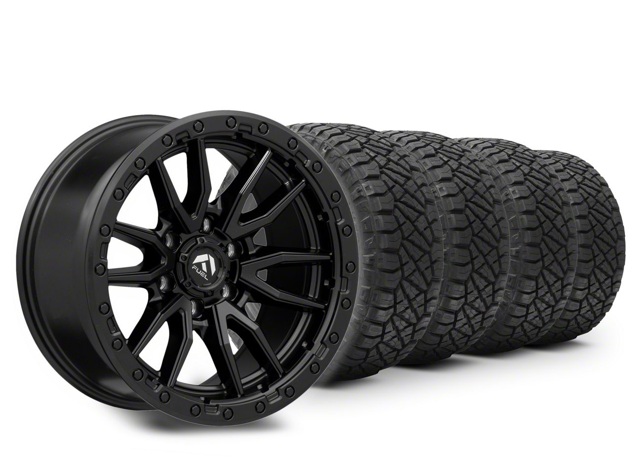 Mounted and Balanced Wheel and Tire Kit. This wheel and tire combo kit features (4) 20x9 Fuel Rebel Matte Black 6-Lug Wheels and (4) NITTO Ridge Grappler All-Terrain 33x12.50R20 tires that have been put together into an easy to buy kit that arrives to your door already mounted and balanced ready to be installed on your vehicle.