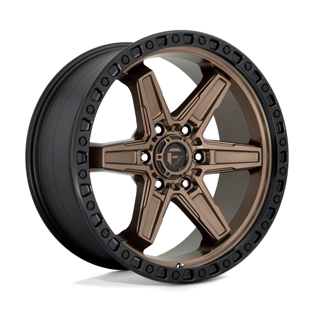 Fuel Wheels Kicker Matte Bronze with Black Bead Ring 6-Lug Wheel; 20x9; 20mm Offset The Fuel Wheels Kicker Matte Bronze with Black Bead Ring 6-Lug Wheel combines a sleek, sophisticated design with premium construction that enhances the visual appeal and complements a wide range of vehicle styles. This wheel is perfect for those seeking to make a bold statement while maintaining elegance and robustness.