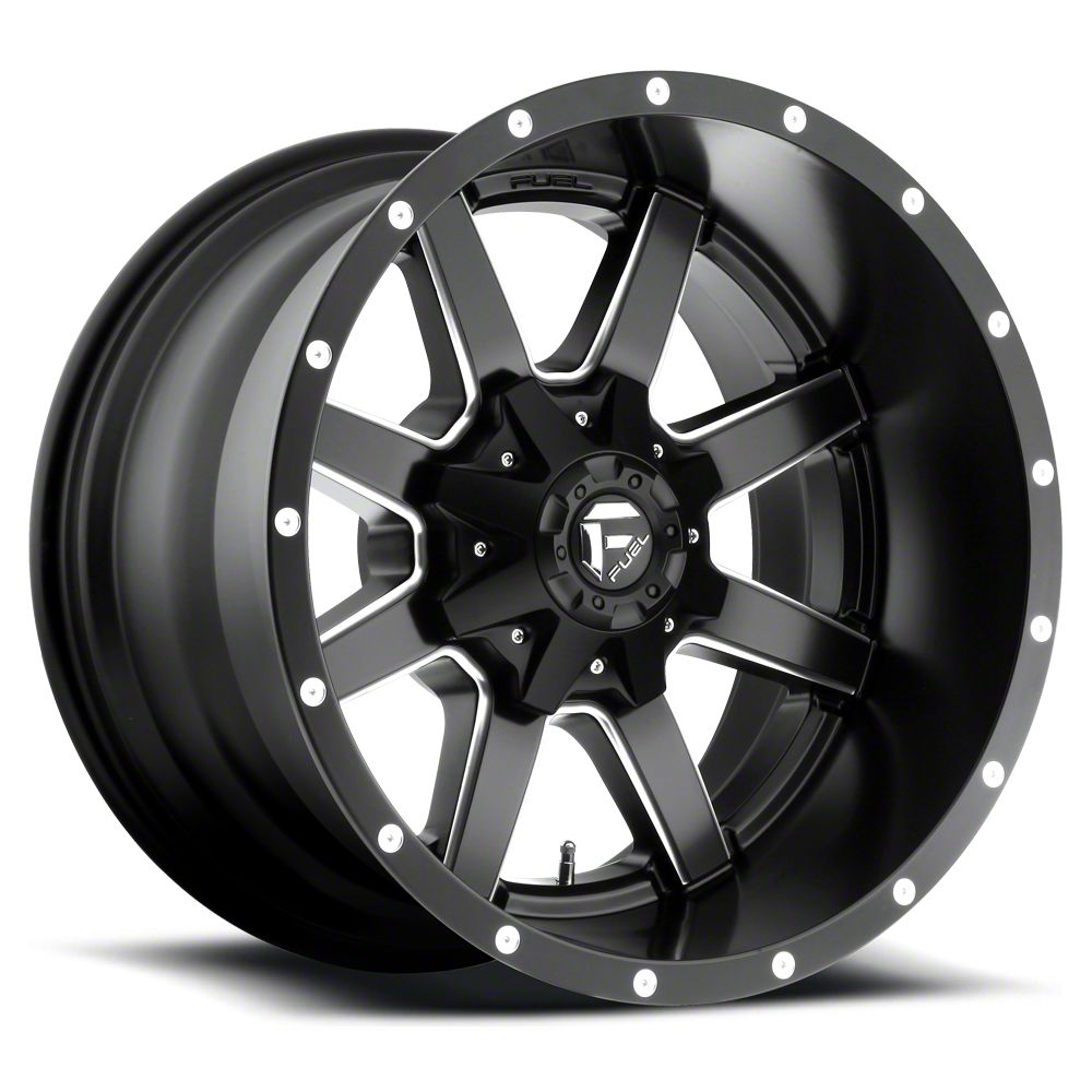Fuel Wheels Maverick Matte Black Milled 6-Lug Wheel; 20x14; -76mm Offset exudes sophistication with its finish, offering a sleek and modern appeal to any vehicle it adorns. The design is meticulously crafted to enhance the aesthetic of your vehicle, giving it a distinctive and upscale look. Perfect for those seeking to elevate their vehicle's style, this wheel blends seamlessly with both contemporary and classic vehicle designs, making it a versatile choice for a wide range of vehicles. Its robust construction ensures durability, making it a reliable choice for drivers who value both style and quality.