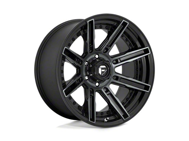 Fuel Wheels Rogue Gloss Machined Double Dark Tint 6-Lug Wheel; 20x10; -18mm Offset The Fuel Wheels Rogue Gloss Machined Double Dark Tint 6-Lug Wheel combines a sleek, sophisticated design with premium construction that enhances the visual appeal and complements a wide range of vehicle styles. This wheel is perfect for those seeking to make a bold statement while maintaining elegance and robustness.