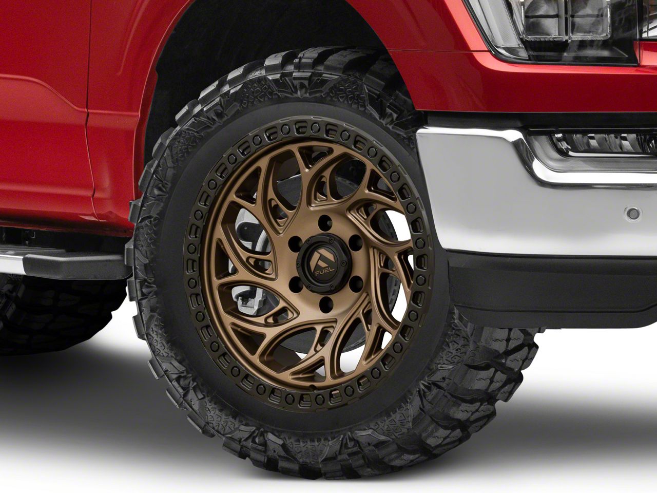 Application. This Fuel Wheels Runner OR Bronze with Black Ring 6-Lug Wheel; 20x9; 1mm Offset, with a backspacing of 5.039 Inch, 128mm; and bolt pattern of 6 x 135mm (6 x 5.31-Inch), provides enhanced alignment and stability. Designed to fit the 2021-2026 F-150 models, it offers precise fitment and is sold individually.