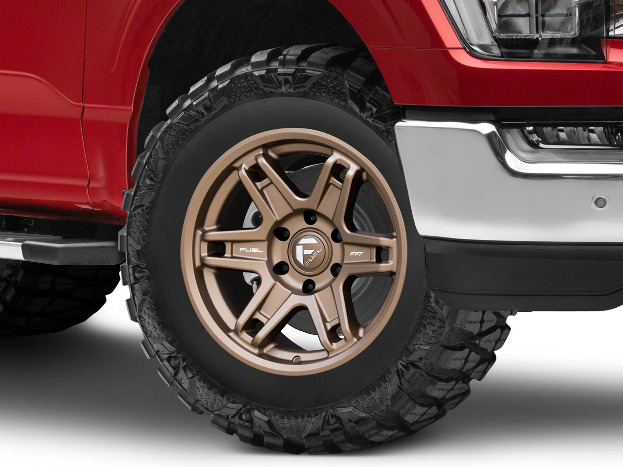 Application. This Fuel Wheels Slayer Matte Bronze 6-Lug Wheel; 18x8.5; 1mm Offset, with a backspace of 4.79 Inch, 121.7mm and bolt pattern of 6 x 135mm (6 x 5.31-Inch), ensures proper alignment and stability. It's designed to fit the 2021-2026 F-150 models, enhancing both the look and the overall driving experience. Sold individually.