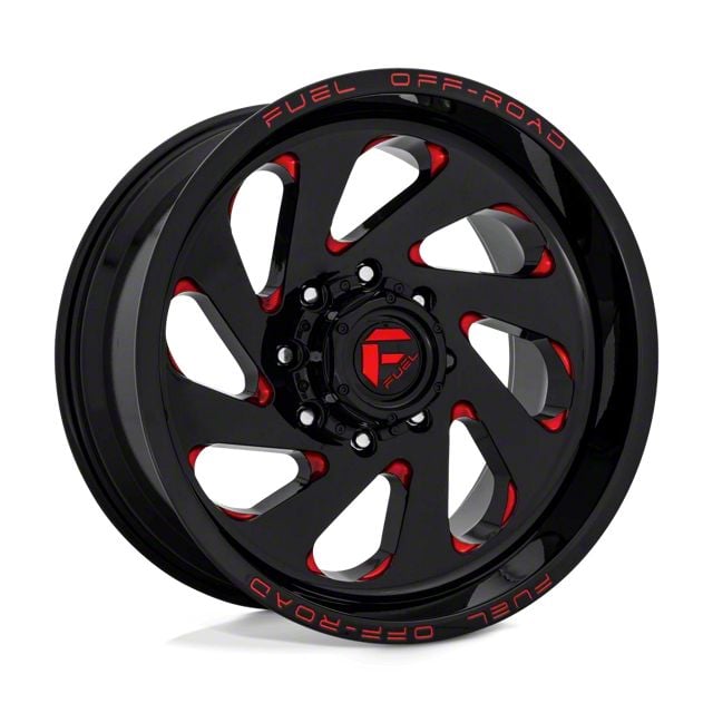 Fuel Wheels Vortex Gloss Black with Red Tinted Clear 6-Lug Wheel; 20x12; -44mm Offset The Fuel Wheels Vortex Gloss Black with Red Tinted Clear 6-Lug Wheel combines a sleek, sophisticated design with premium construction that enhances the visual appeal and complements a wide range of vehicle styles. This wheel is perfect for those seeking to make a bold statement while maintaining elegance and robustness.