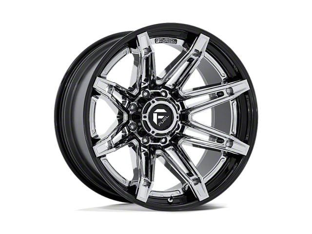 Fuel Wheels Fusion Forged Brawl Chrome with Gloss Black Lip 8-Lug Wheel; 20x10; -18mm Offset - Experience the sleek elegance of the Fuel Wheels wheel. Its matte black finish adds a touch of sophistication to your vehicle, enhancing its overall appearance without compromising on durability. Perfect for a variety of vehicle styles, this wheel is a testament to the brand's commitment to quality and aesthetic excellence.