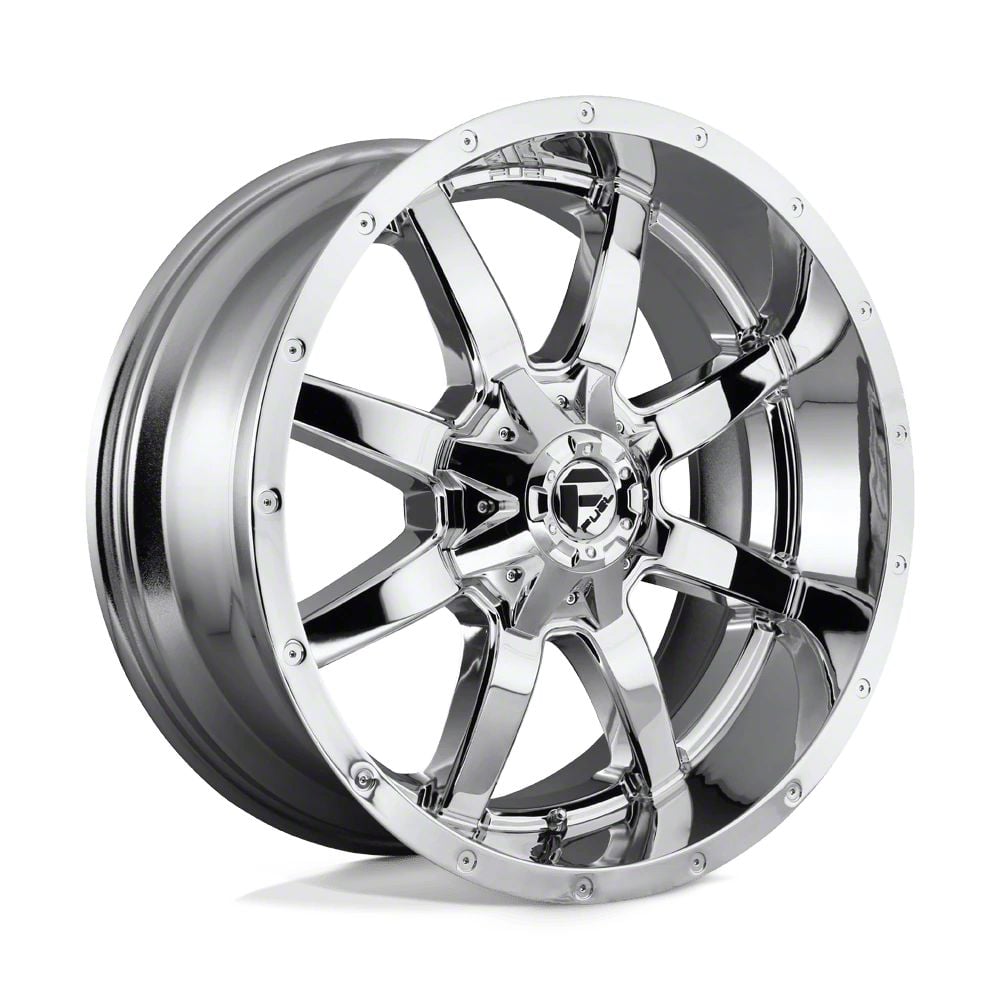 The 22x10 Fuel Wheels Maverick Chrome 8-Lug Wheel is completed in a high-quality polished chrome finish for an aggressive appearance that will turn heads. Chrome plating occurs in a 3-step process involving copper, nickel and chrome.
