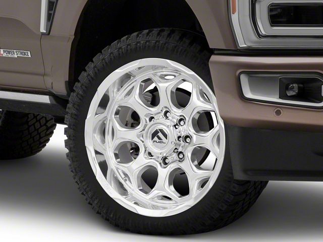 Application. This Fuel Wheels Scepter Polished Milled 8-Lug Wheel; 22x10; -18mm Offset, with a backspace of 4.791 Inch, 121.7mm and bolt pattern of 8 x 170mm (8 x 6.69-Inch), is designed to enhance alignment and driving stability, ensuring a perfect fit with the vehicle model. Specifically designed to fit 2023-20260 Super Duty models, this wheel's specifications contribute to a seamless alignment and stable driving experience by ensuring the wheel fits perfectly within the vehicle's wheel well, reducing the risk of rubbing issues and optimizing handling characteristics. Sold individually.