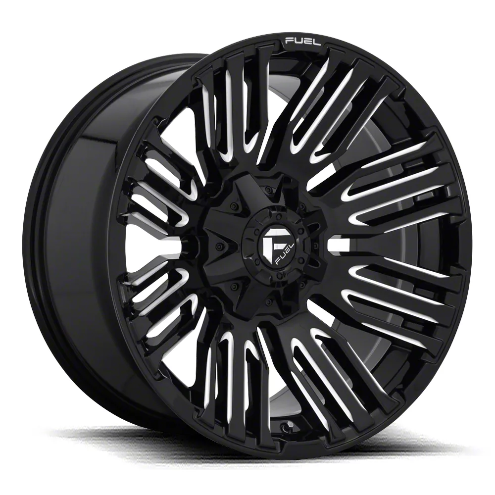 Fuel Wheels Schism Gloss Black Milled 8-Lug Wheel; 20x10; -18mm Offset The Fuel Wheels Schism Gloss Black Milled 8-Lug Wheel combines a sleek, sophisticated design with premium construction that enhances the visual appeal and complements a wide range of vehicle styles. This wheel is perfect for those seeking to make a bold statement while maintaining elegance and robustness.