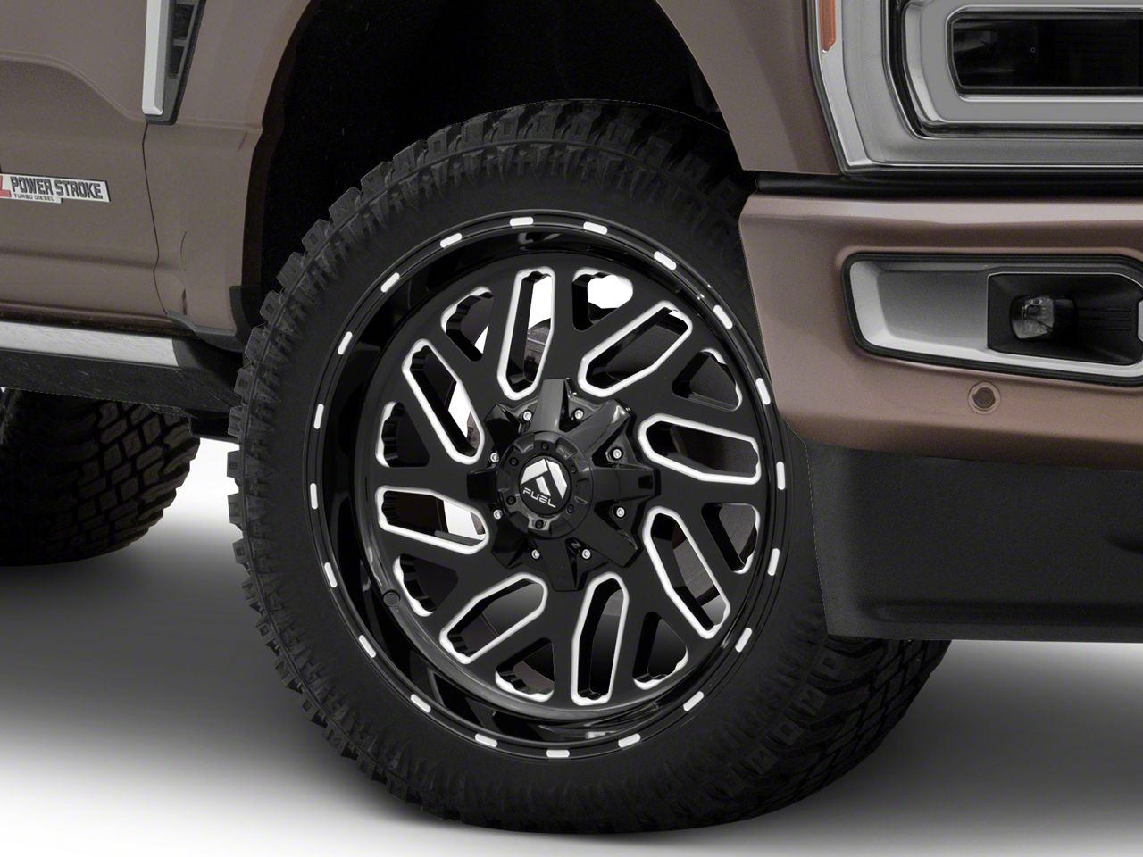 Application. This Fuel Wheels Triton Gloss Black Milled 8-Lug Wheel; 24x12; -44mm Offset, with a backspace of 4.768 Inch, 121.1mm and bolt pattern of 8 x 170mm (8 x 6.69-Inch), is designed to provide not only a striking visual appeal but also to contribute significantly to the alignment and driving stability of the vehicle. Its specifications ensure a precise fit with the vehicle model, enhancing the overall driving experience. Built to fit the 2023-2026 F-250 Super Duty, this wheel is sold individually.