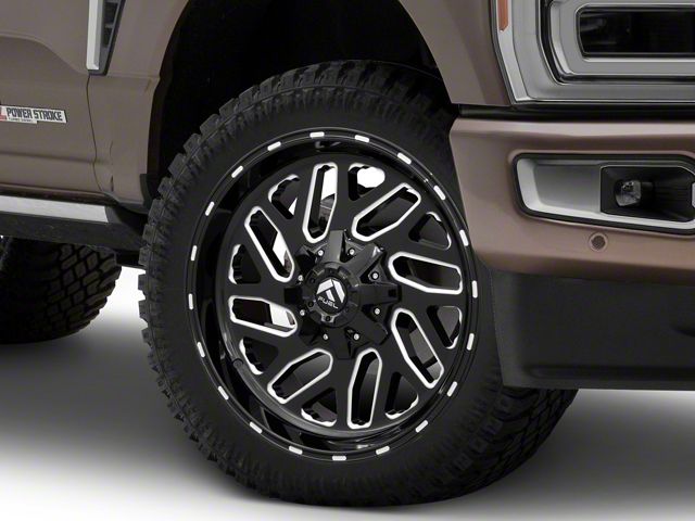 Fuel Wheels Triton Gloss Black Milled 8-Lug Wheel; 24x12; -44mm Offset The Fuel Wheels Triton Gloss Black Milled 8-Lug Wheel combines a sleek, sophisticated design with premium construction that enhances the visual appeal and complements a wide range of vehicle styles. This wheel is perfect for those seeking to make a bold statement while maintaining elegance and robustness.