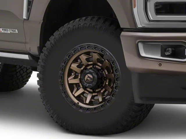 Application. This Fuel Wheels Covert Matte Bronze with Black Bead Ring 8-Lug Wheel; 17x9; 1mm Offset, with a backspace of 5.039 Inch, 128mm and bolt pattern of 8 x 170mm (8 x 6.69-Inch), is designed to provide not only a striking visual appeal but also to contribute significantly to the alignment and driving stability of the vehicle. Its specifications ensure a precise fit with the vehicle model, enhancing the overall driving experience. Built to fit the 2023-2026 F-350 Super Duty SRW, this wheel is sold individually.