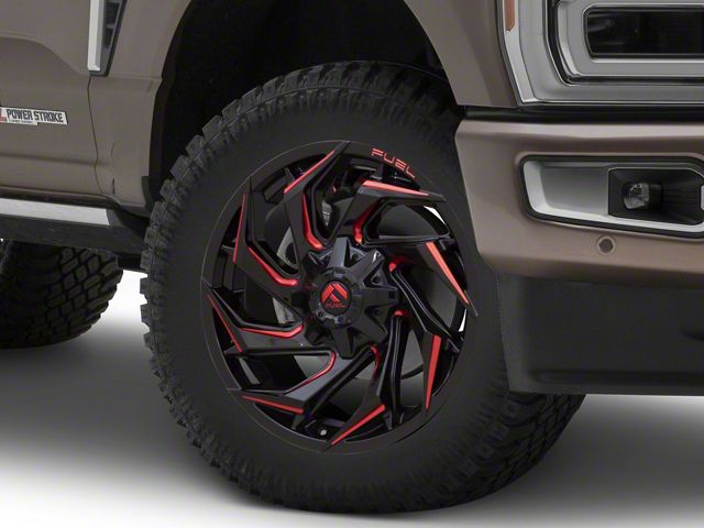 Application. This Fuel Wheels Reaction Gloss Black Milled with Red Tint 8-Lug Wheel; 20x10; -18mm Offset, with a backspace of 4.791 Inch, 121.7mm and bolt pattern of 8 x 170mm (8 x 6.69-Inch), is designed to provide not only a striking visual appeal but also to contribute significantly to the alignment and driving stability of the vehicle. Its specifications ensure a precise fit with the vehicle model, enhancing the overall driving experience. Built to fit the 2023-2026 F-350 Super Duty SRW, this wheel is sold individually.