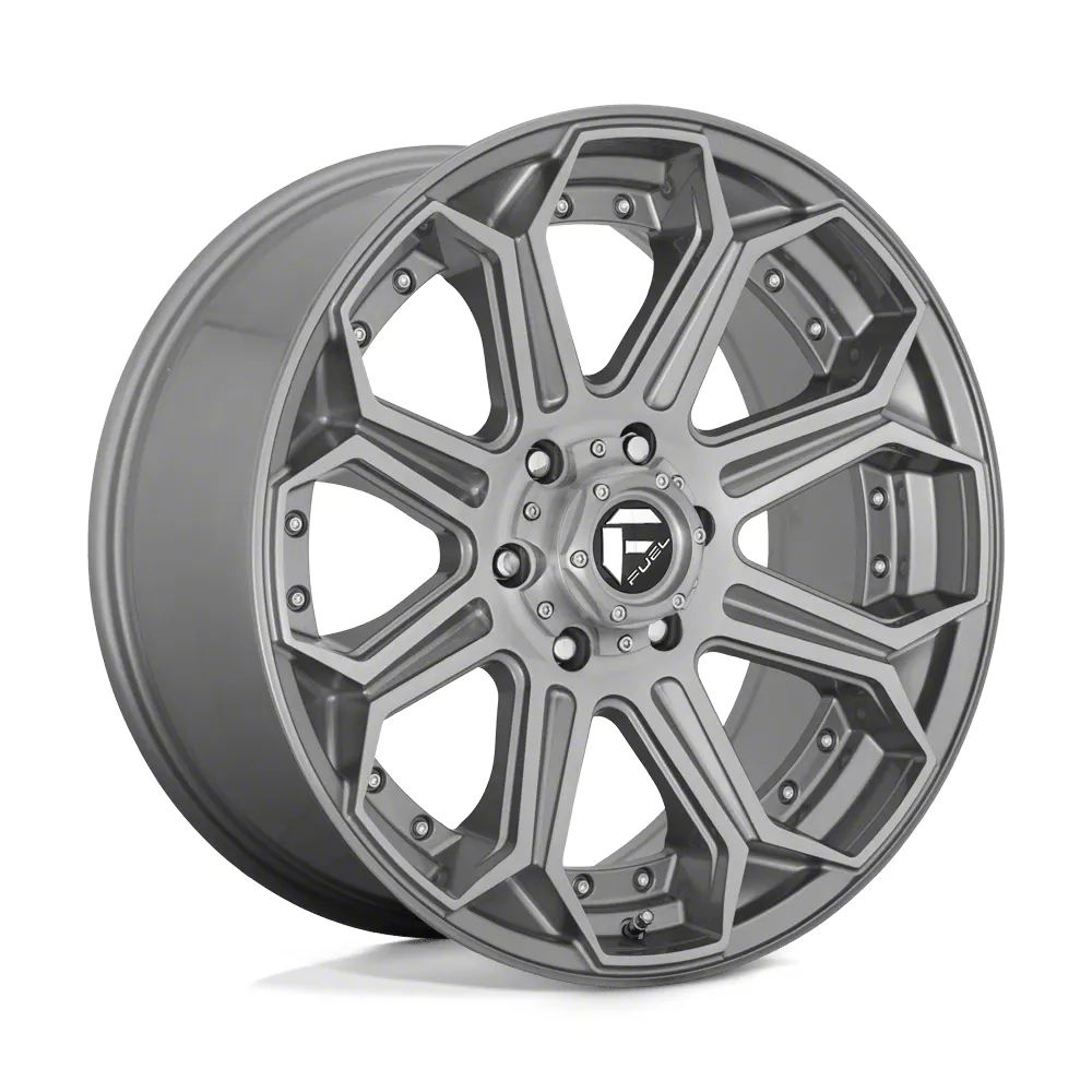 Fuel Wheels Siege Brushed Gunmetal with Tinted Clear 8-Lug Wheel; 26x14; -75mm Offset The Fuel Wheels Siege Brushed Gunmetal with Tinted Clear 8-Lug Wheel combines a sleek, sophisticated design with premium construction that enhances the visual appeal and complements a wide range of vehicle styles. This wheel is perfect for those seeking to make a bold statement while maintaining elegance and robustness.