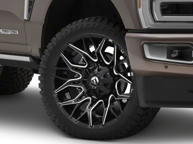 Application. This Fuel Wheels Twitch Glossy Black Milled 8-Lug Wheel; 22x10; -18mm Offset, with a backspace of 4.791 Inch, 121.7mm and bolt pattern of 8 x 170mm (8 x 6.69-Inch), is designed to provide not only a striking visual appeal but also to contribute significantly to the alignment and driving stability of the vehicle. Its specifications ensure a precise fit with the vehicle model, enhancing the overall driving experience. Built to fit the 2023-2026 F-350 Super Duty SRW, this wheel is sold individually.