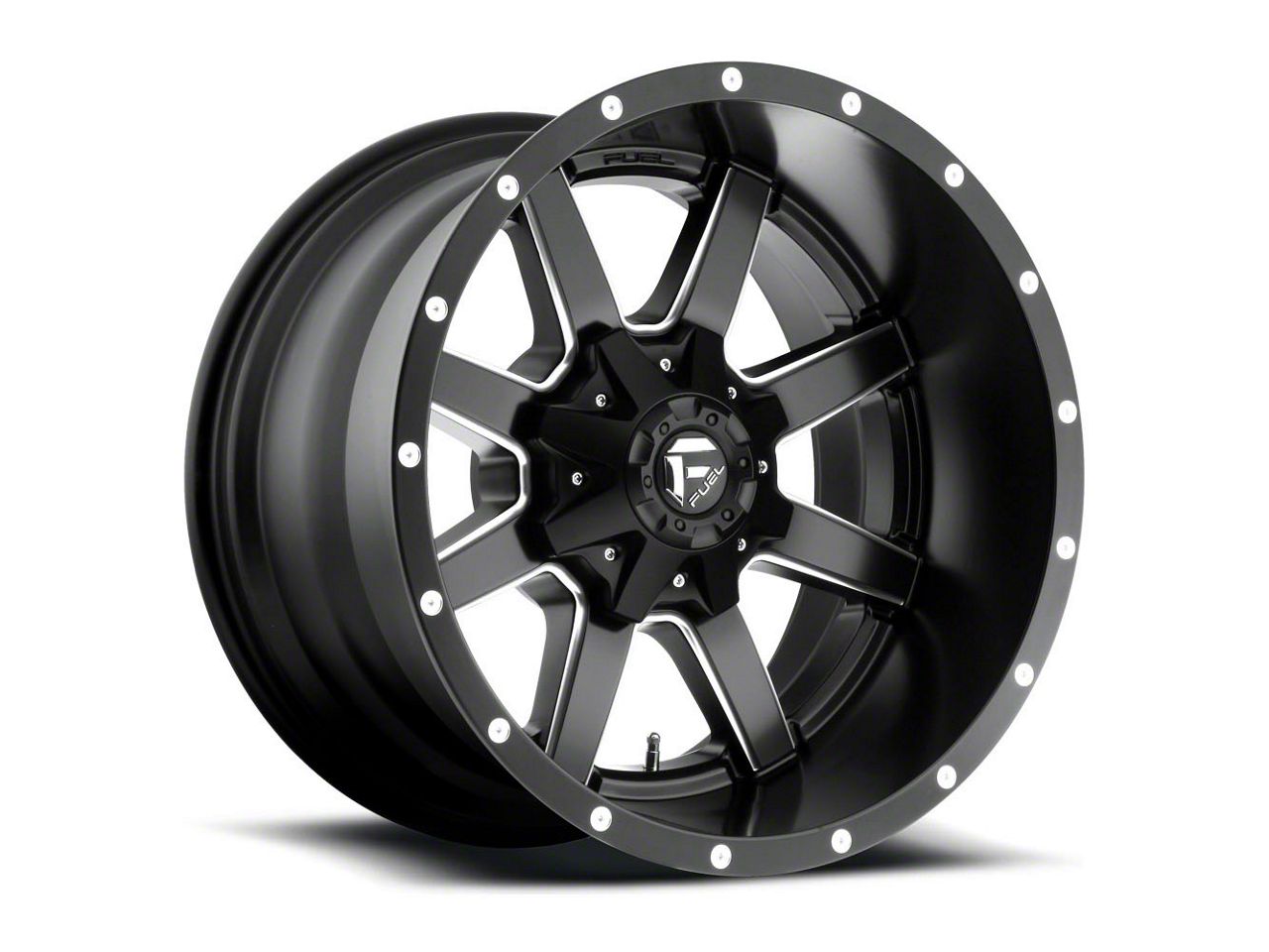 Fuel Wheels Maverick Matte Black Milled 6-Lug Wheel; 20x14; -76mm Offset exudes sophistication with its finish, offering a sleek and modern appeal to any vehicle it adorns. The design is meticulously crafted to enhance the aesthetic of your vehicle, giving it a distinctive and upscale look. Perfect for those seeking to elevate their vehicle's style, this wheel blends seamlessly with both contemporary and classic vehicle designs, making it a versatile choice for a wide range of vehicles. Its robust construction ensures durability, making it a reliable choice for drivers who value both style and quality.