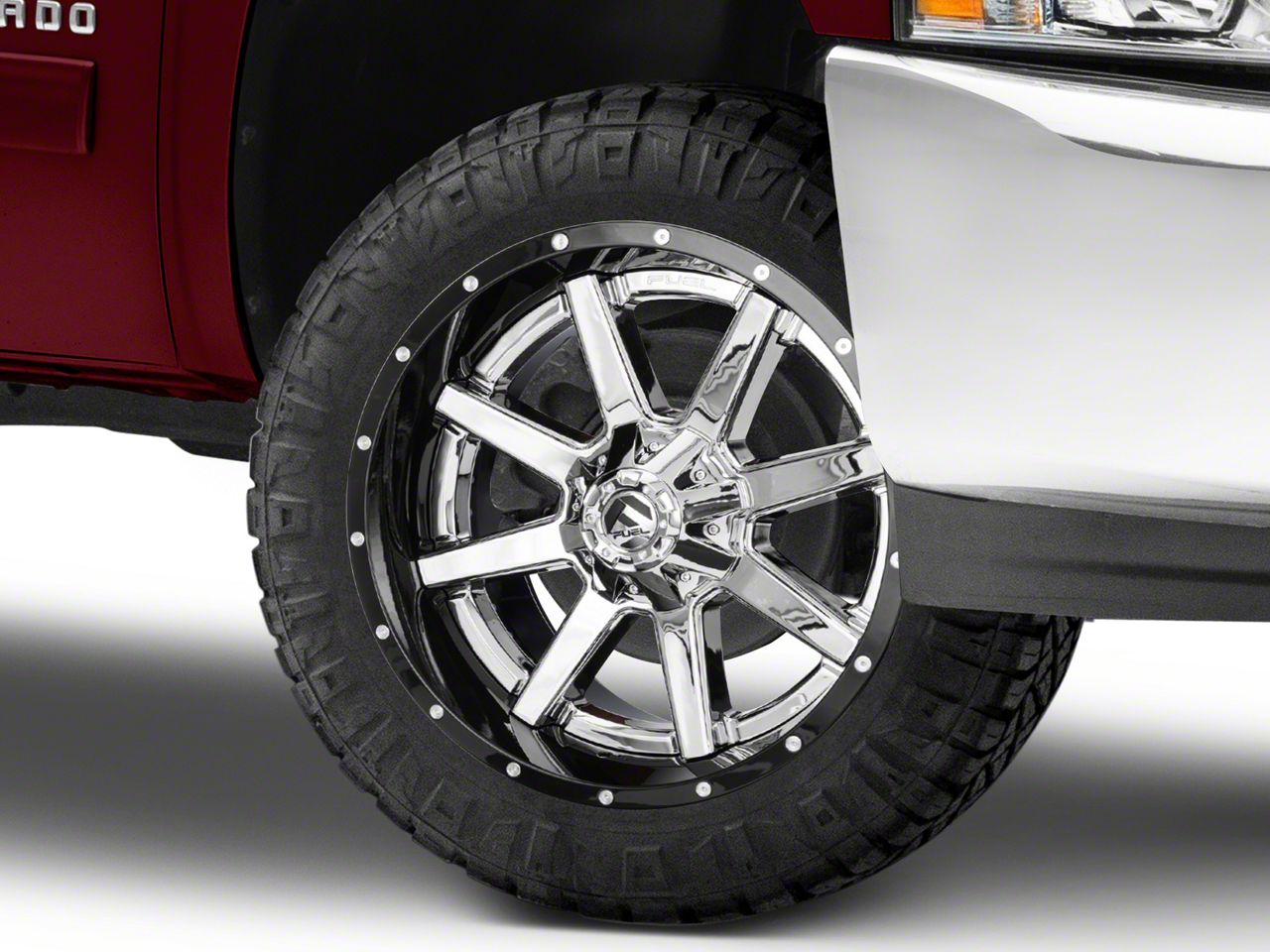 Fuel Wheels Maverick Chrome with Gloss Black Lip 6-Lug Wheel; 22x10; -13mm Offset The Maverick wheel boasts a sophisticated aesthetic appeal that complements a variety of vehicle styles. Crafted by renowned brands, its design emphasizes a premium and robust nature, ensuring your vehicle stands out in any crowd.
