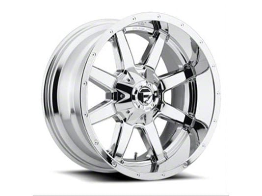 Fuel Wheels Maverick Chrome 6-Lug Wheel; 20x12; -44mm Offset: Immerse your vehicle in style and elegance with this wheel's captivating matte black finish. The unique 10-hole design of this Mammoth wheel sets your vehicle apart, making a statement on the road. Whether cruising the city streets or heading out for a weekend escape, this wheel complements a wide range of vehicle styles.