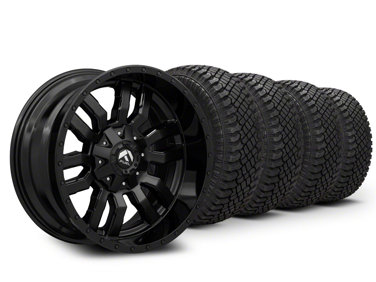 Mounted and Balanced Wheel and Tire Kit. This wheel and tire combo kit features (4) 20x10 Fuel Wheels Sledge Matte Black with Gloss Black Lip Wheels and (4) Atturo Trail Blade X/T Multi-Terrain 33" - 305/55R20 tires that have been put together into an easy to buy kit that arrives to your door already mounted and balanced ready to be installed on your vehicle.