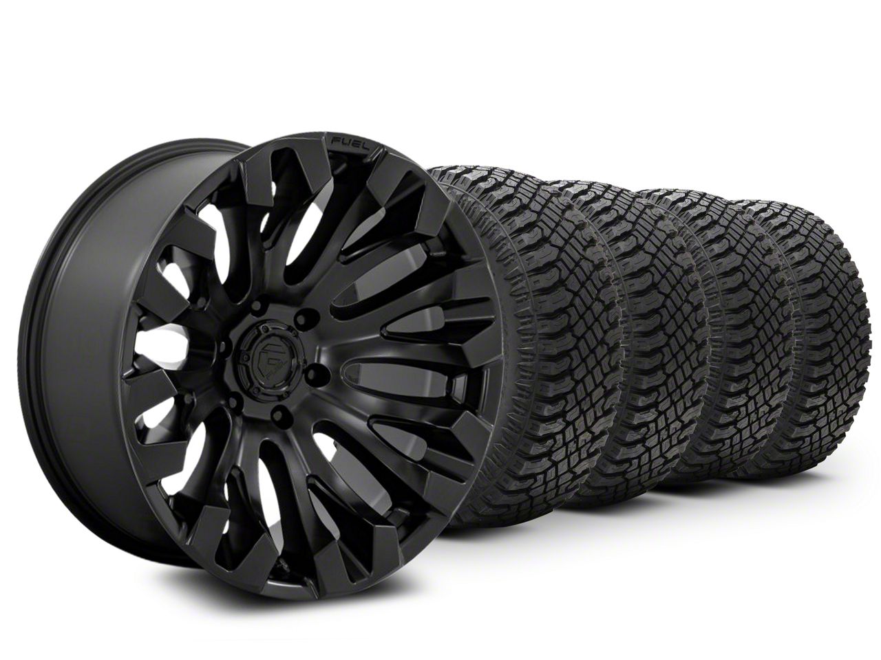 Mounted and Balanced Wheel and Tire Kit. This wheel and tire combo kit features (4) 20x10 Fuel Wheels Quake Blackout 5-Lug Wheels and (4) Atturo All-Terrain Trail Blade X/T 305/55R20 tires that have been put together into an easy to buy kit that arrives to your door already mounted and balanced ready to be installed on your vehicle.