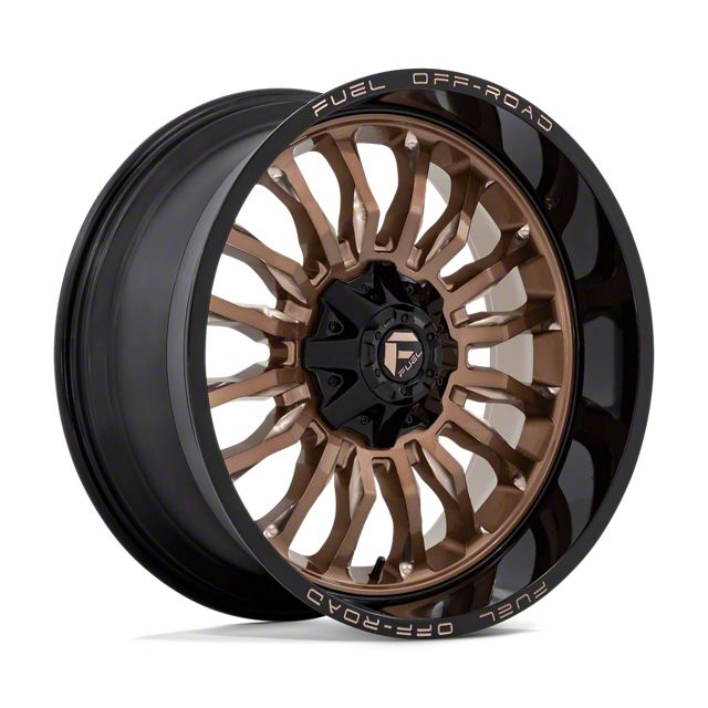 Fuel Wheels Arc Platinum Bronze with Black Lip 6-Lug Wheel; 22x10; -18mm Offset The Fuel Wheels Arc Platinum Bronze with Black Lip 6-Lug Wheel combines a sleek, sophisticated design with premium construction that enhances the visual appeal and complements a wide range of vehicle styles. This wheel is perfect for those seeking to make a bold statement while maintaining elegance and robustness.