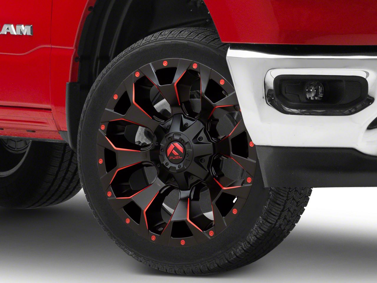 Application. This Fuel Wheels Assault Matte Black Red Milled 6-Lug Wheel; 22x9.5; 20mm Offset, with a backspace of 6.037 Inch, 153.3mm; and bolt pattern of 6 x 139.7mm (6 x 5.5-Inch), is designed to fit the 2019-2026 RAM 1500 . The precise specifications of the wheel ensure proper alignment and driving stability, perfectly complementing the vehicle's model. Sold individually.