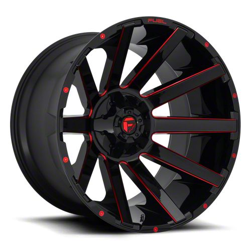 Application. This Fuel Wheels Contra Gloss Black Red Tinted Clear 6-Lug Wheel; 24x12; -44mm Offset with a backspace of 4.768 Inch, 121.2mm; and bolt pattern of 6 x 139.7mm (6 x 5.5-Inch), contributes to alignment, driving stability, and ensures a perfect fit with the vehicle model. Designed to fit the 2019-2026 RAM 1500. Sold individually.