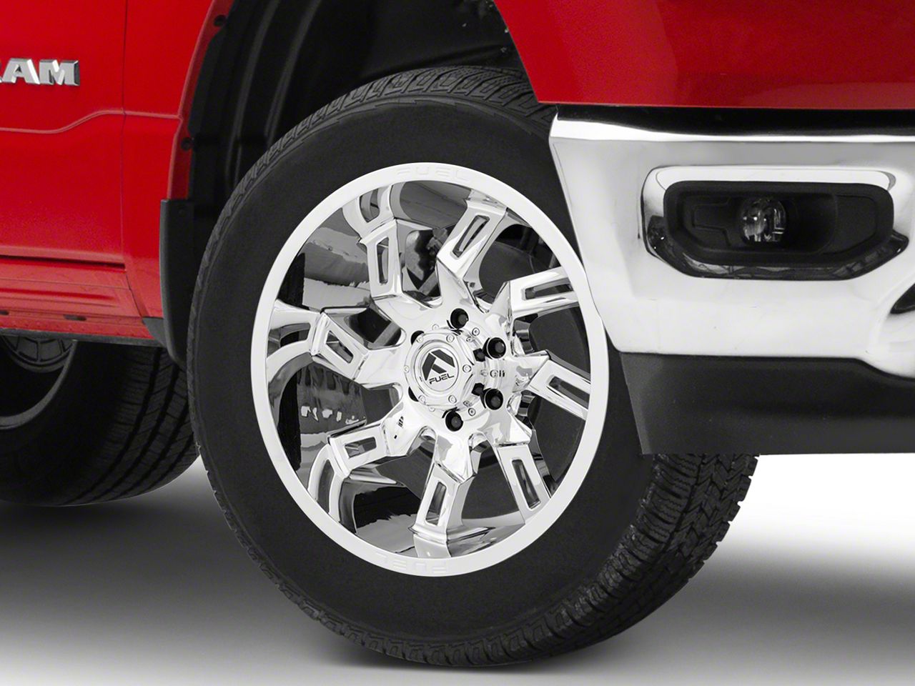 Application. This Fuel Wheels Lockdown Chrome 6-Lug Wheel; 20x10; -18mm Offset, with a backspace of 4.791 Inch, 121.7mm and bolt pattern of 6 x 139.7mm (6 x 5.5-Inch), is designed to enhance alignment and driving stability, ensuring a perfect fit with the vehicle model. Specifically designed to fit 2019-2026 RAM 1500 models, this wheel's specifications contribute to a seamless alignment and stable driving experience by ensuring the wheel fits perfectly within the vehicle's wheel well, reducing the risk of rubbing issues and optimizing handling characteristics. Sold individually.