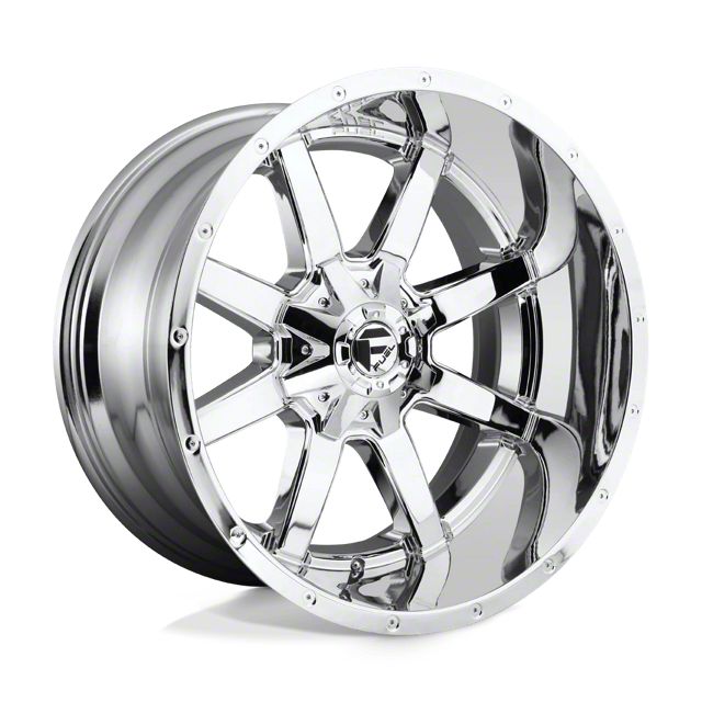 Fuel Wheels Maverick Chrome 8-Lug Wheel; 18x12; -44mm Offset The Fuel Wheels Maverick Chrome 8-Lug Wheel combines a sleek, sophisticated design with premium construction that enhances the visual appeal and complements a wide range of vehicle styles. This wheel is perfect for those seeking to make a bold statement while maintaining elegance and robustness.