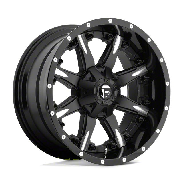 Fuel Wheels Nutz Matte Black Milled 5-Lug Wheel; 20x10; -19mm Offset The Fuel Wheels Nutz Matte Black Milled 5-Lug Wheel combines a sleek, sophisticated design with premium construction that enhances the visual appeal and complements a wide range of vehicle styles. This wheel is perfect for those seeking to make a bold statement while maintaining elegance and robustness.