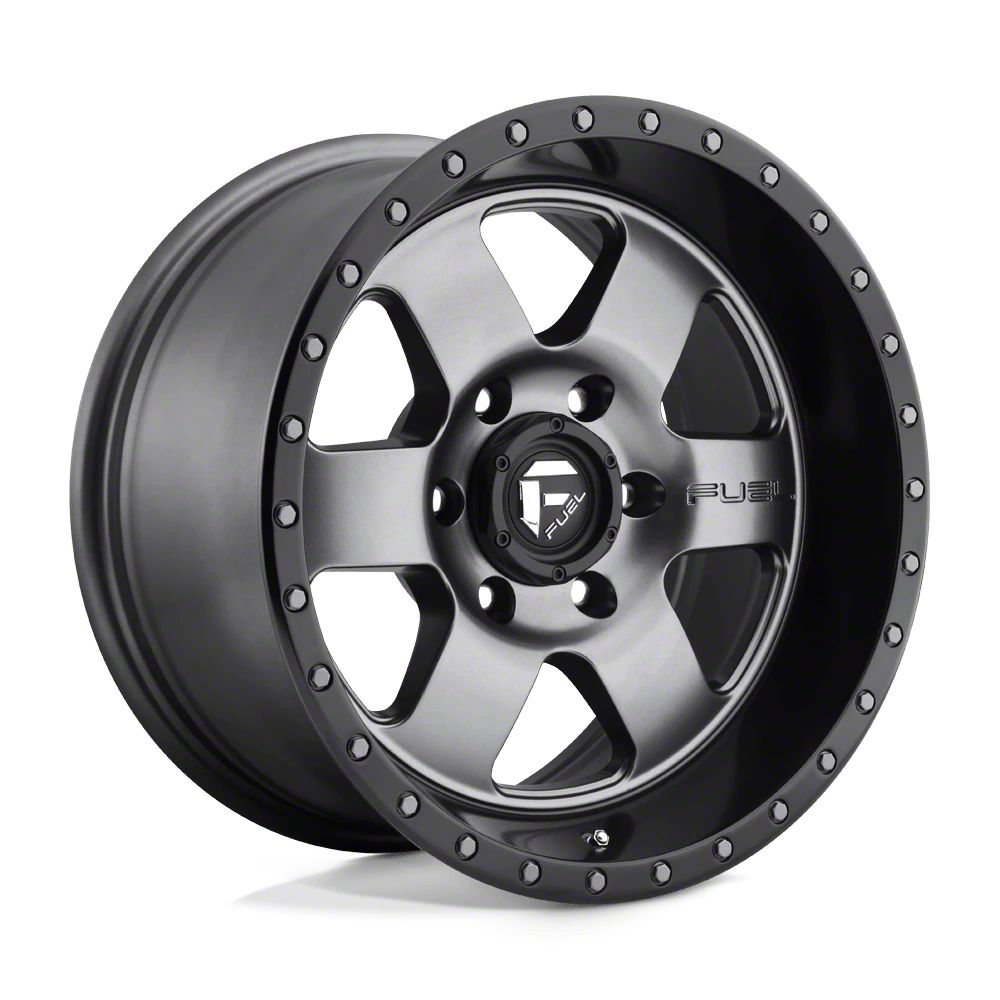 Fuel Wheels Podium Matte Gunmetal with Black Bead Ring 5-Lug Wheel; 18x9; 20mm Offset The Fuel Wheels Podium Matte Gunmetal with Black Bead Ring 5-Lug Wheel combines a sleek, sophisticated design with premium construction that enhances the visual appeal and complements a wide range of vehicle styles. This wheel is perfect for those seeking to make a bold statement while maintaining elegance and robustness.
