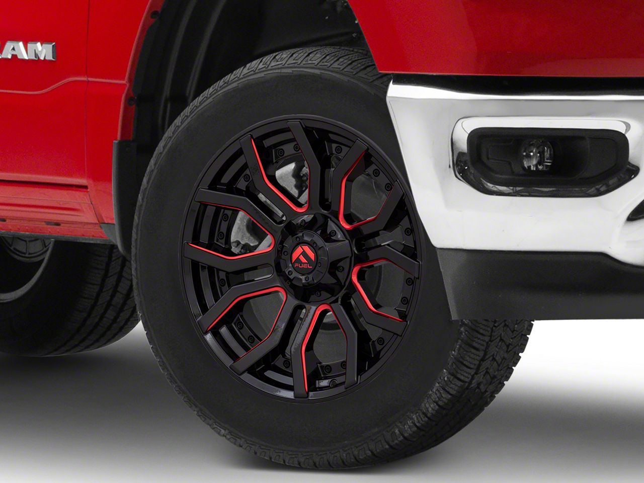 Application. This Fuel Wheels Rage Gloss Black Red Tinted 6-Lug Wheel; 20x9; 1mm Offset with a backspace of 5.2004 Inch, 128.1mm and bolt pattern of 6 x 139.7mm (6 x 5.5-Inch) ensures impeccable alignment and driving stability. It's designed to fit the 2019-2026 RAM 1500 models, sold individually.