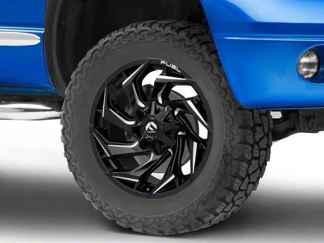 Fuel Wheels Reaction Gloss Black Milled 8-Lug Wheel; 20x10; -18mm Offset The Fuel Wheels Reaction Gloss Black Milled 8-Lug Wheel combines a sleek, sophisticated design with premium construction that enhances the visual appeal and complements a wide range of vehicle styles. This wheel is perfect for those seeking to make a bold statement while maintaining elegance and robustness.