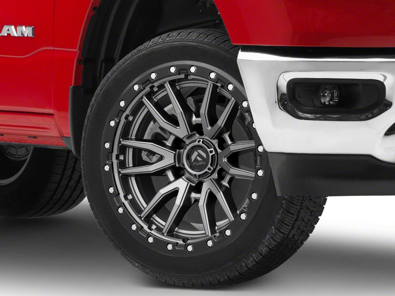 Application. This Fuel Wheels Rebel Matte Gunmetal with Black Bead Ring 6-Lug Wheel; 22x10; -13mm Offset, with a backspacing of 4.988 Inch, 126.7mm and bolt pattern of 6 x 139.7mm (6 x 5.5-Inch), ensures precise alignment and stable driving. Designed to fit 2019-2026 RAM 1500 models, this wheel is sold individually.