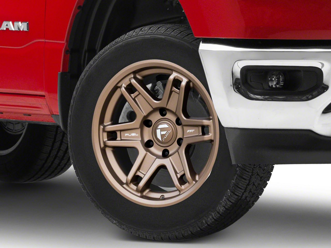 Application. The Fuel Wheels Slayer Matte Bronze 6-Lug Wheel; 20x9; 1mm Offset, with a backspace of 5.039 Inch, 128mm and a bolt pattern of 6 x 139.7mm (6 x 5.5-Inch), is designed to enhance alignment and stability for a smooth driving experience. Specifically tailored to fit 2019-2026 RAM 1500 models, it ensures a perfect blend of style and functionality. Sold individually, this wheel is an ideal upgrade for your vehicle.