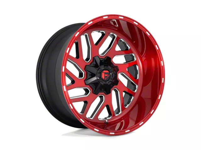 Fuel Wheels Triton Candy Red Milled 6-Lug Wheel; 22x10; -19mm Offset The Fuel Wheels Triton Candy Red Milled 6-Lug Wheel combines a sleek, sophisticated design with premium construction that enhances the visual appeal and complements a wide range of vehicle styles. This wheel is perfect for those seeking to make a bold statement while maintaining elegance and robustness.