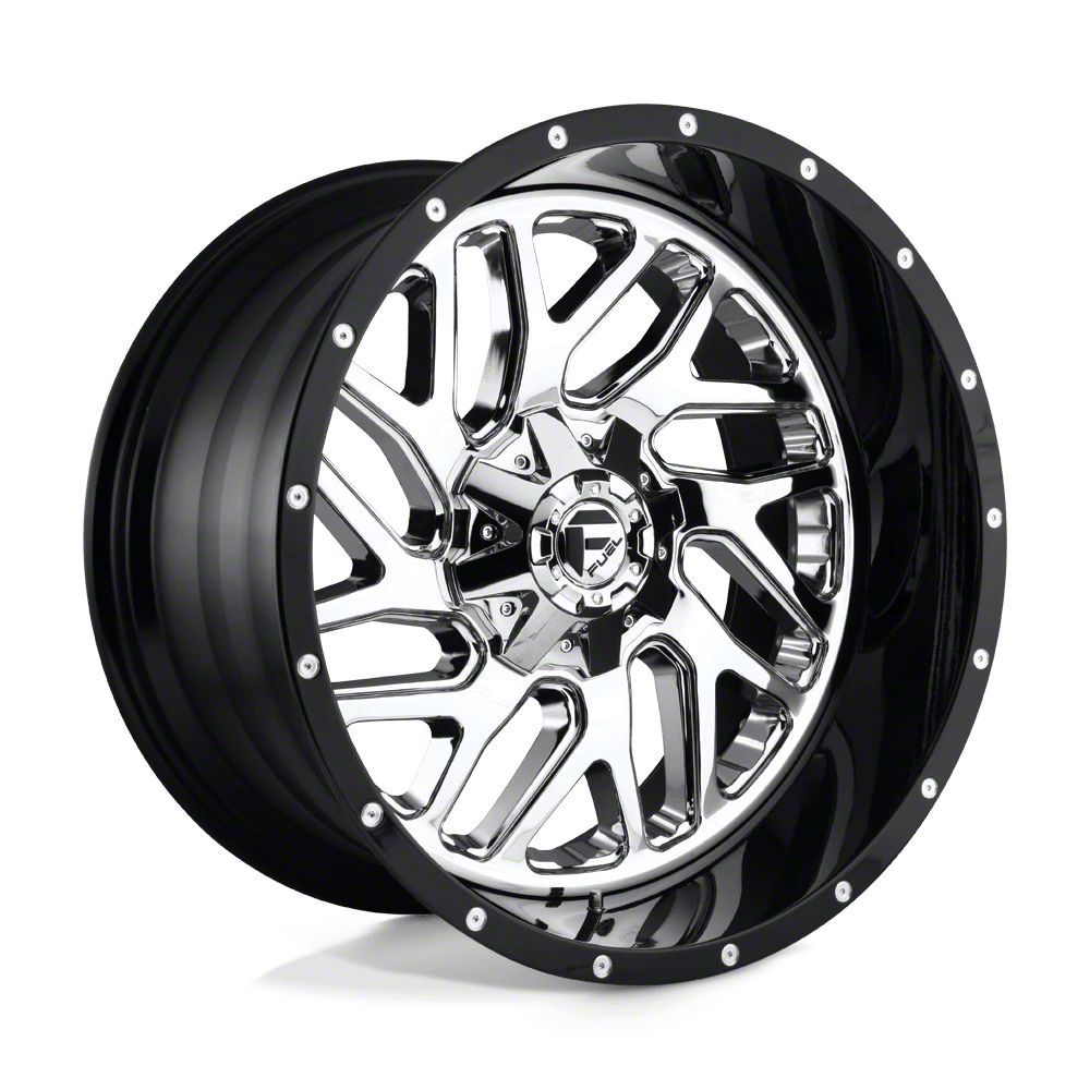 Fuel Wheels Triton Chrome with Gloss Black Lip 8-Lug Wheel; 20x10; -19mm Offset The Fuel Wheels Triton Chrome with Gloss Black Lip 8-Lug Wheel combines a sleek, sophisticated design with premium construction that enhances the visual appeal and complements a wide range of vehicle styles. This wheel is perfect for those seeking to make a bold statement while maintaining elegance and robustness.