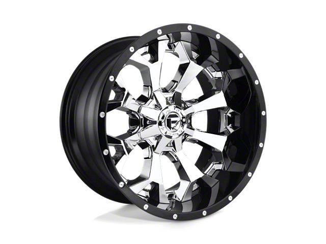 Fuel Wheels Assault Chrome with Gloss Black Lip 8-Lug Wheel; 20x10; -18mm Offset The Fuel Wheels Assault Chrome with Gloss Black Lip 8-Lug Wheel combines a sleek, sophisticated design with premium construction that enhances the visual appeal and complements a wide range of vehicle styles. This wheel is perfect for those seeking to make a bold statement while maintaining elegance and robustness.