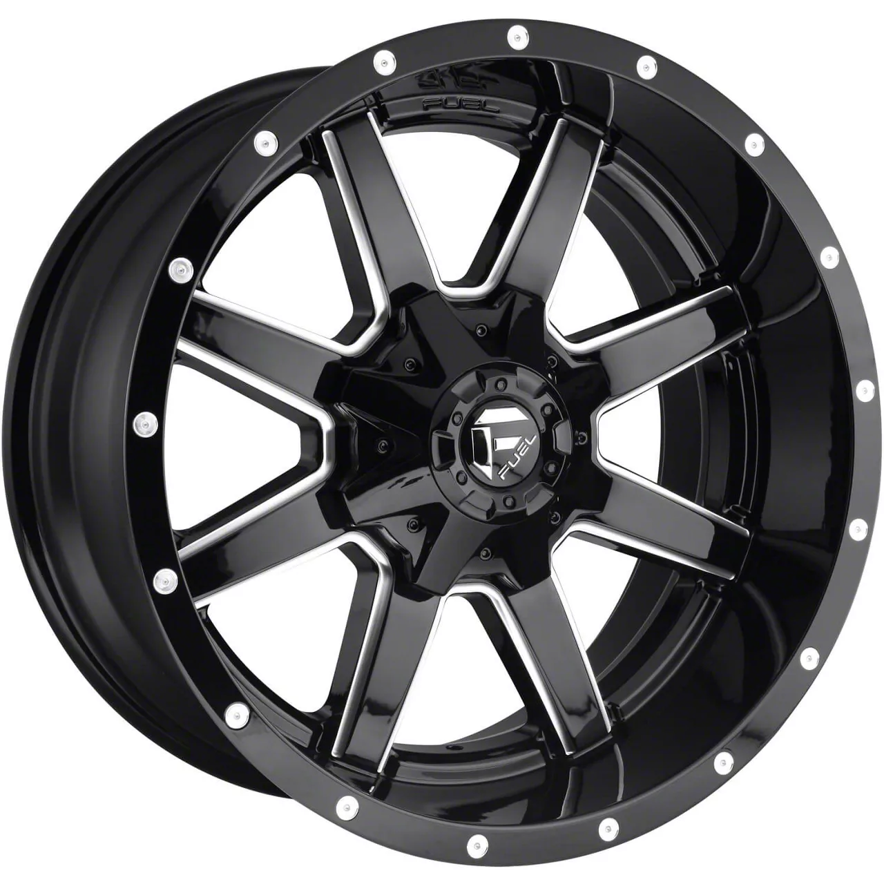 Fuel Wheels Maverick Gloss Black Milled 8-Lug Wheel; 20x9; 1mm Offset. The Fuel Wheels Maverick Gloss Black Milled 8-Lug Wheel offers a striking balance of style and refinement. Its unique design accentuates the vehicle's aesthetic, while the premium construction underscores its robust nature. This wheel is a perfect choice for those seeking both elegance and a strong visual statement.
