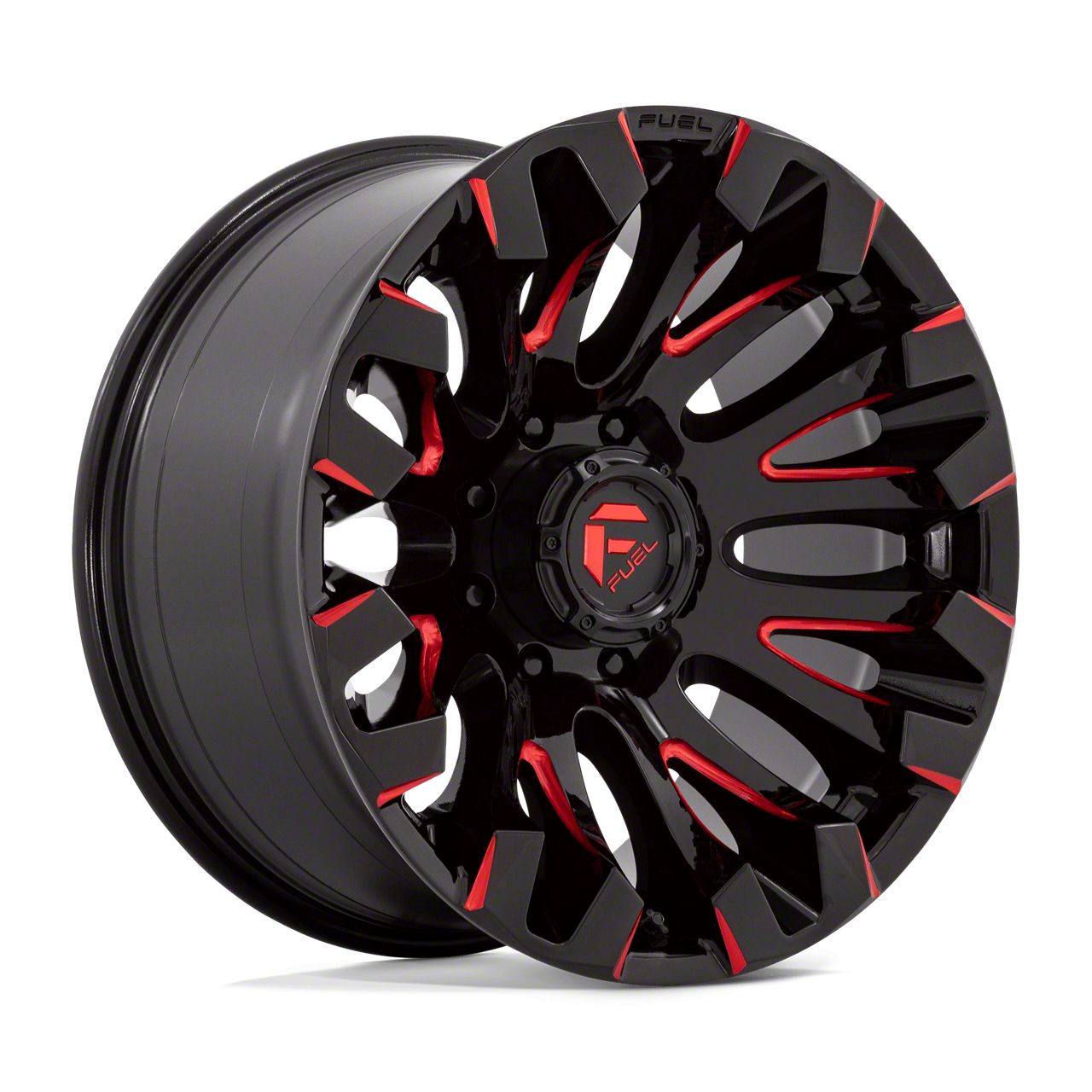 Fuel Wheels Quake Gloss Black Milled with Red Tint 8-Lug Wheel; 18x9; 1mm Offset The Fuel Wheels Quake Gloss Black Milled with Red Tint 8-Lug Wheel combines a sleek, sophisticated design with premium construction that enhances the visual appeal and complements a wide range of vehicle styles. This wheel is perfect for those seeking to make a bold statement while maintaining elegance and robustness.