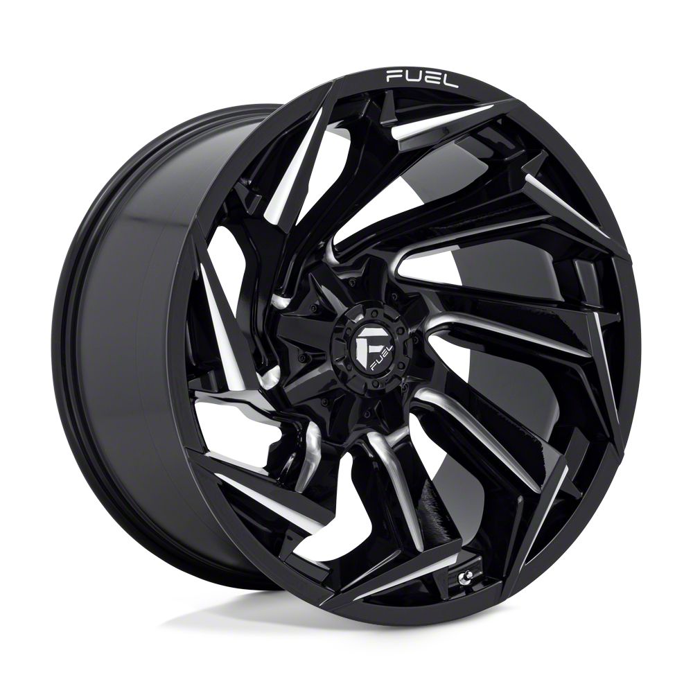 Fuel Wheels Reaction Gloss Black Milled 8-Lug Wheel; 22x12; -44mm Offset The Fuel Wheels Reaction Gloss Black Milled 8-Lug Wheel combines a sleek, sophisticated design with premium construction that enhances the visual appeal and complements a wide range of vehicle styles. This wheel is perfect for those seeking to make a bold statement while maintaining elegance and robustness.