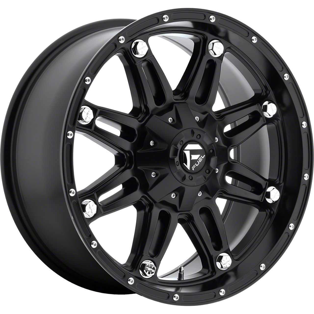 Fuel Wheels Hostage Matte Black 8-Lug Wheel; 20x9; 1mm Offset - This wheel's elegant design will certainly enhance your vehicle's aesthetic, complementing its luxury and performance. The unique styling of this wheel makes it an ideal choice for a standout quality of your ride, reflecting the premium quality associated with the Fuel Wheels brand.