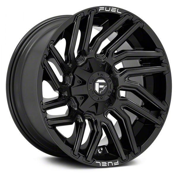Fuel Wheels Typhoon Gloss Black 8-Lug Wheel; 20x9; 1mm Offset. Enhance your vehicle's look with the Fuel Wheels Typhoon Gloss Black 8-Lug Wheel. This premium wheel adds a touch of elegance and class to your vehicle, complementing its sophisticated aesthetic.