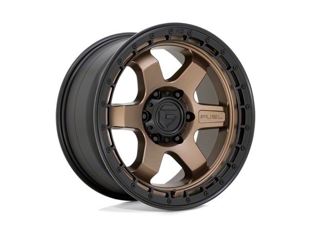 Fuel Wheels Block Matte Bronze with Black Ring 6-Lug Wheel; 18x9; -12mm Offset. The Fuel Wheels Block Matte Bronze with Black Ring 6-Lug Wheel offers a striking balance of style and refinement. Its unique design accentuates the vehicle's aesthetic, while the premium construction underscores its robust nature. This wheel is a perfect choice for those seeking both elegance and a strong visual statement.