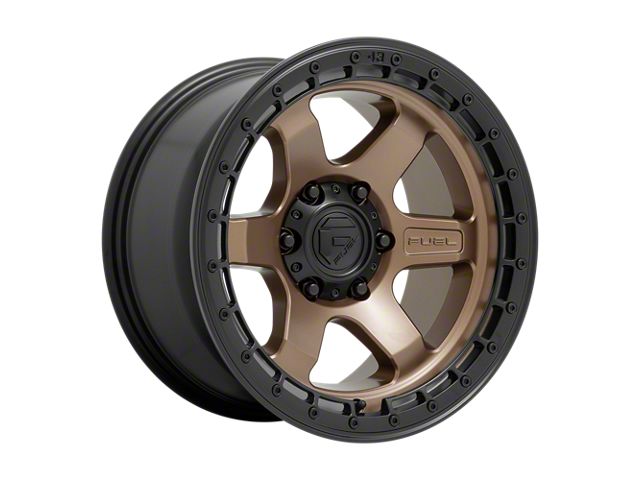 Fuel Wheels Block Matte Bronze with Black Ring 6-Lug Wheel; 18x9; 1mm Offset offers a striking balance between style and durability. The design speaks to the brand's commitment to quality, enhancing the vehicle's appearance with its distinct look. This wheel, with its unique aesthetics, is ideal for drivers who appreciate a blend of modern design and robust functionality.