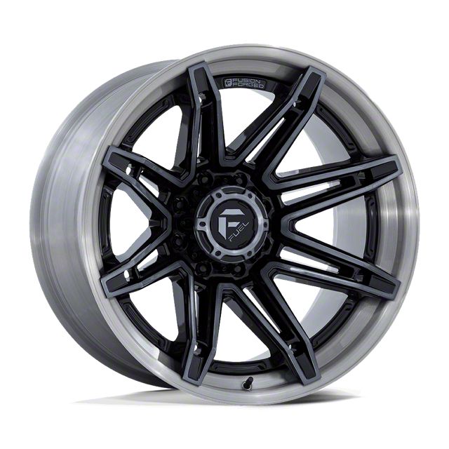 Fuel Wheels Fusion Forged Brawl Gloss Black Brushed Dark Tinted Clear 6-Lug Wheel; 22x10; -18mm Offset. Enhance your vehicle's look with the Fuel Wheels Fusion Forged Brawl Gloss Black Brushed Dark Tinted Clear 6-Lug Wheel. This premium wheel adds a touch of elegance and class to your vehicle, complementing its sophisticated aesthetic.