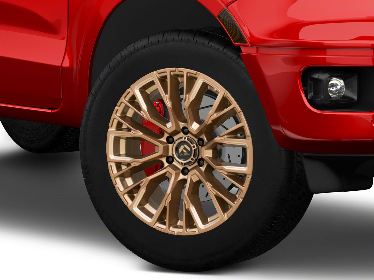 Application. This Fuel Wheels Rebar Platinum Bronze Milled 6-Lug Wheel; 20x9; 1mm Offset, with a backspacing of 5.039 Inch, 128mm and a bolt pattern of 6 x 139.7mm (6 x 5.5-Inch), is designed to fit 2019-2023 Ranger models. Sold individually, it's an ideal choice for those seeking to elevate their vehicle's appearance and performance.