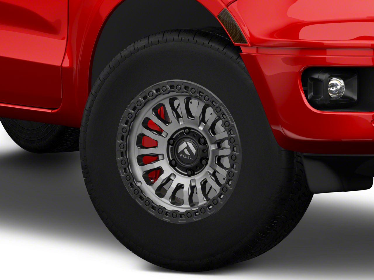 Application. This Fuel Wheels Rincon Matte Gunmetal with Matte Black Lip 6-Lug Wheel; 17x9; -12mm Offset with a backspace of 4.528 Inch, 115mm and bolt pattern of 6 x 139.7mm (6 x 5.5-Inch) ensures impeccable alignment and unmatched driving stability. Specifically designed for 2019-2023 Ranger models, each wheel is sold individually.