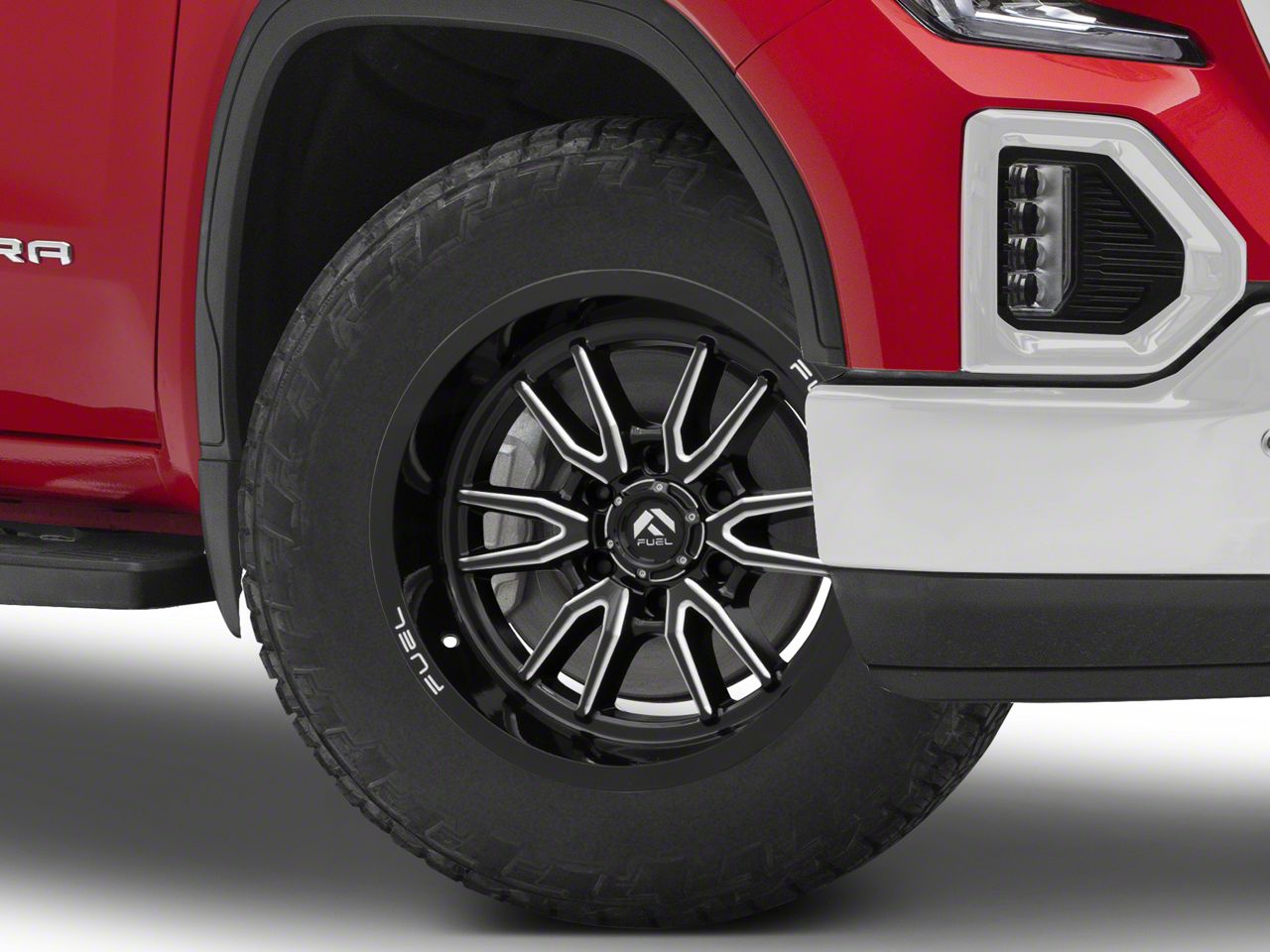Application. This Fuel Wheels Clash Gloss Black Milled 6-Lug Wheel; 20x10; -18mm Offset, with a backspace of 4.791 Inch, 121.7mm and bolt pattern of 6 x 139.7mm (6 x 5.5-Inch), is designed to enhance alignment and driving stability, ensuring a perfect fit with the vehicle model. Specifically designed to fit 2019-2026 Sierra 1500 models, this wheel's specifications contribute to a seamless alignment and stable driving experience by ensuring the wheel fits perfectly within the vehicle's wheel well, reducing the risk of rubbing issues and optimizing handling characteristics. Sold individually.